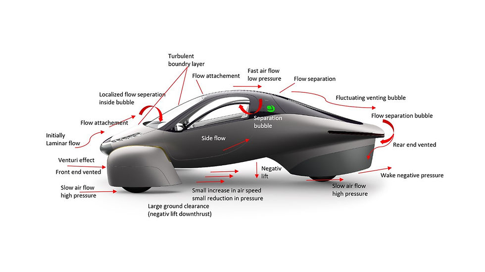 Actually, what little drag there is has been designed as down force at the back of the car. 25 lbs at 65 mph and rapidly increasing with speed.