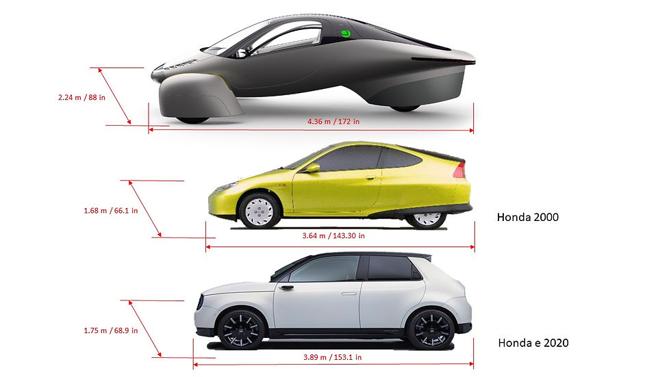With it's longer length and wider stance, the Aptera will require a larger parking spot than the Honda Insight.
